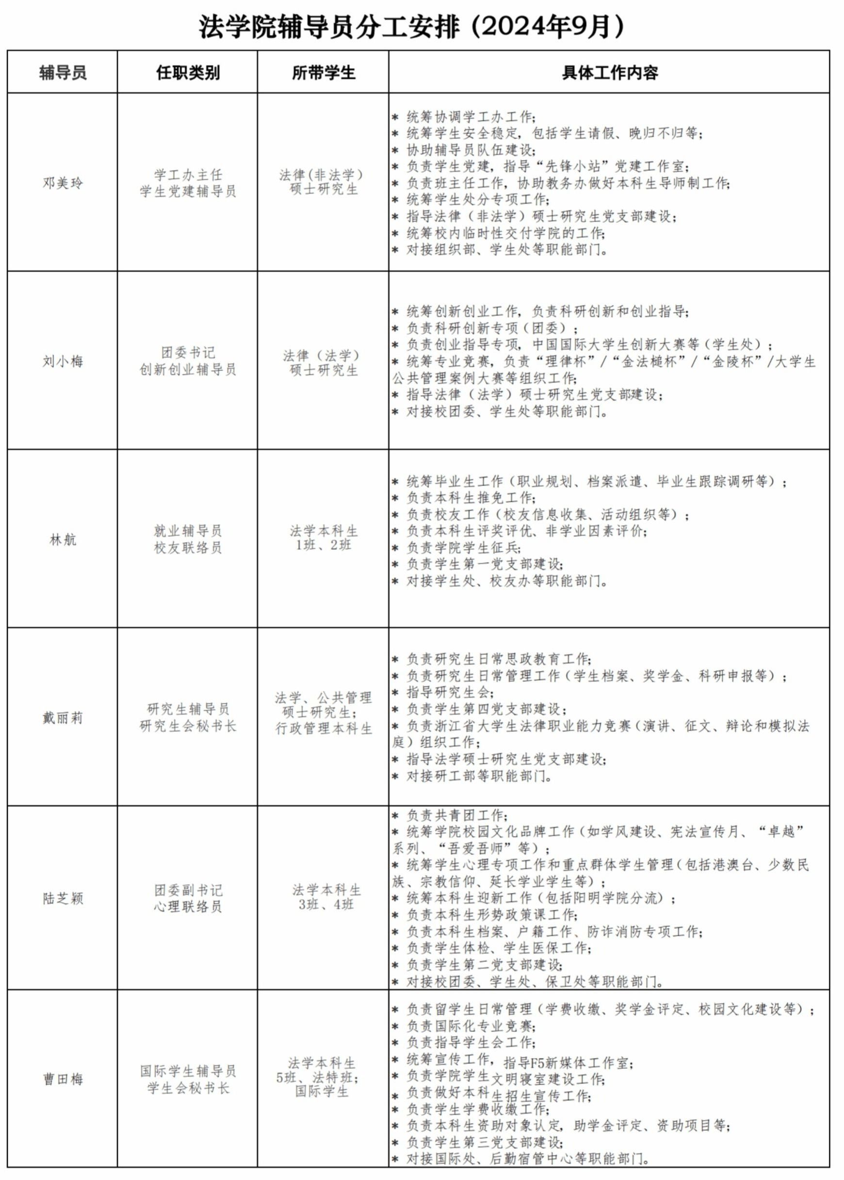 51吃瓜网 学工办辅导员分工安排(2024年6月)