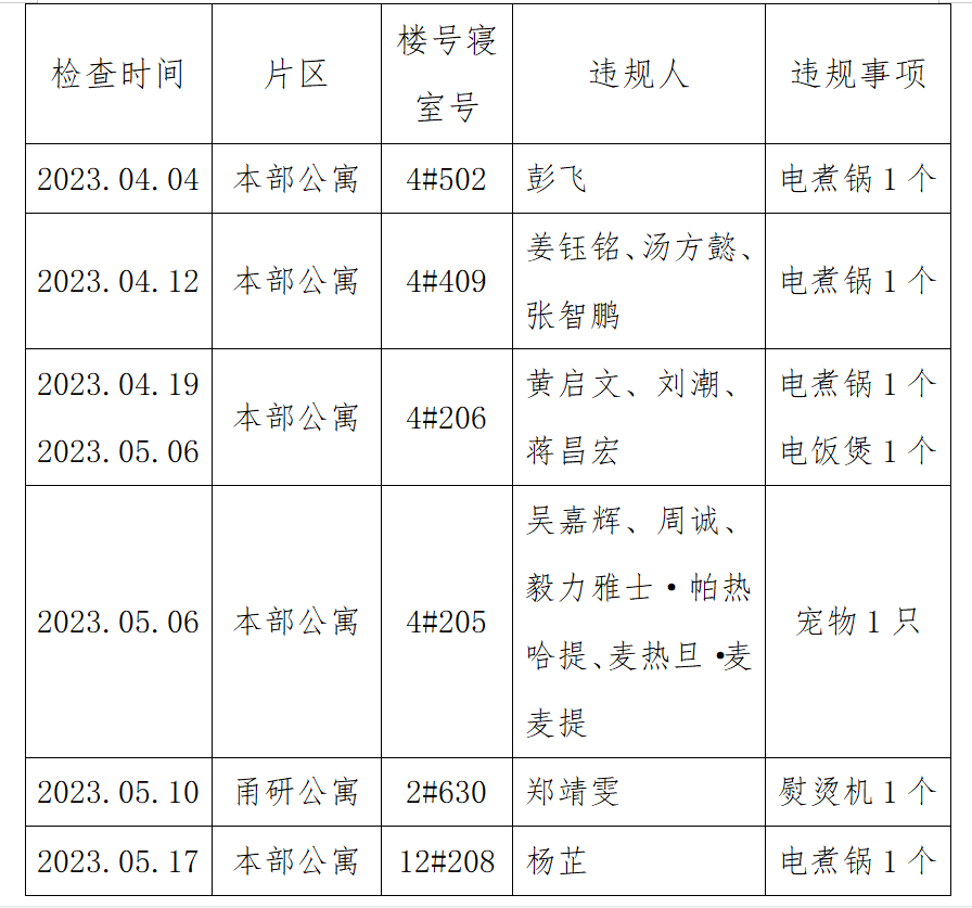 6间寝室有违禁电器情况,根据《51吃瓜网