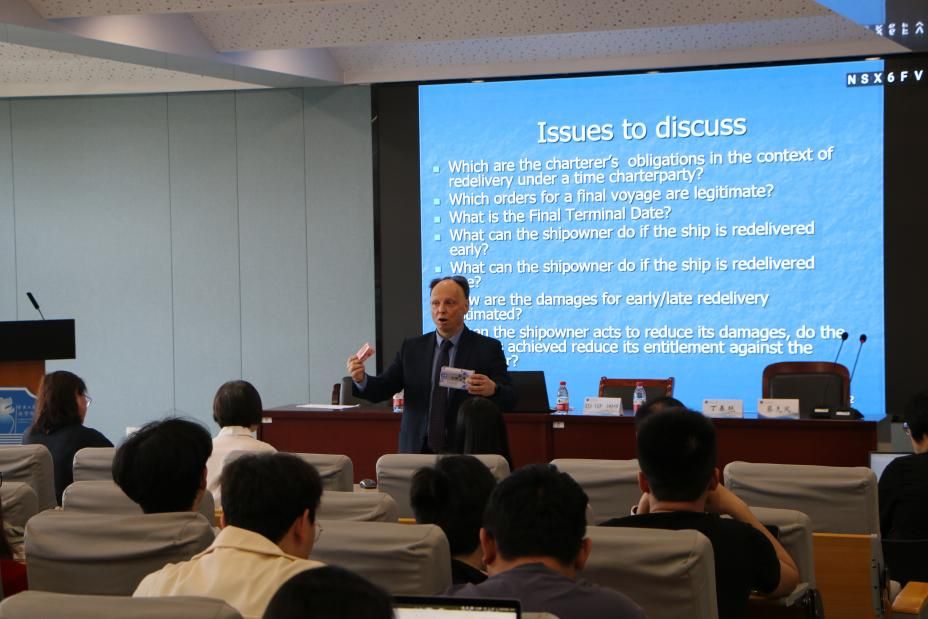米基斯教授以其在海商法领域的深厚造诣,结合典型案例系统分析了定期租船合同(Time Charterparty)中迟延还船引发的法律争议。他深入剖析了合同条款解释、船东与租船人的权利义务平衡、迟延还船的赔偿等关键问题。互动环节,米基斯教授对同学们的提问予以了解答。