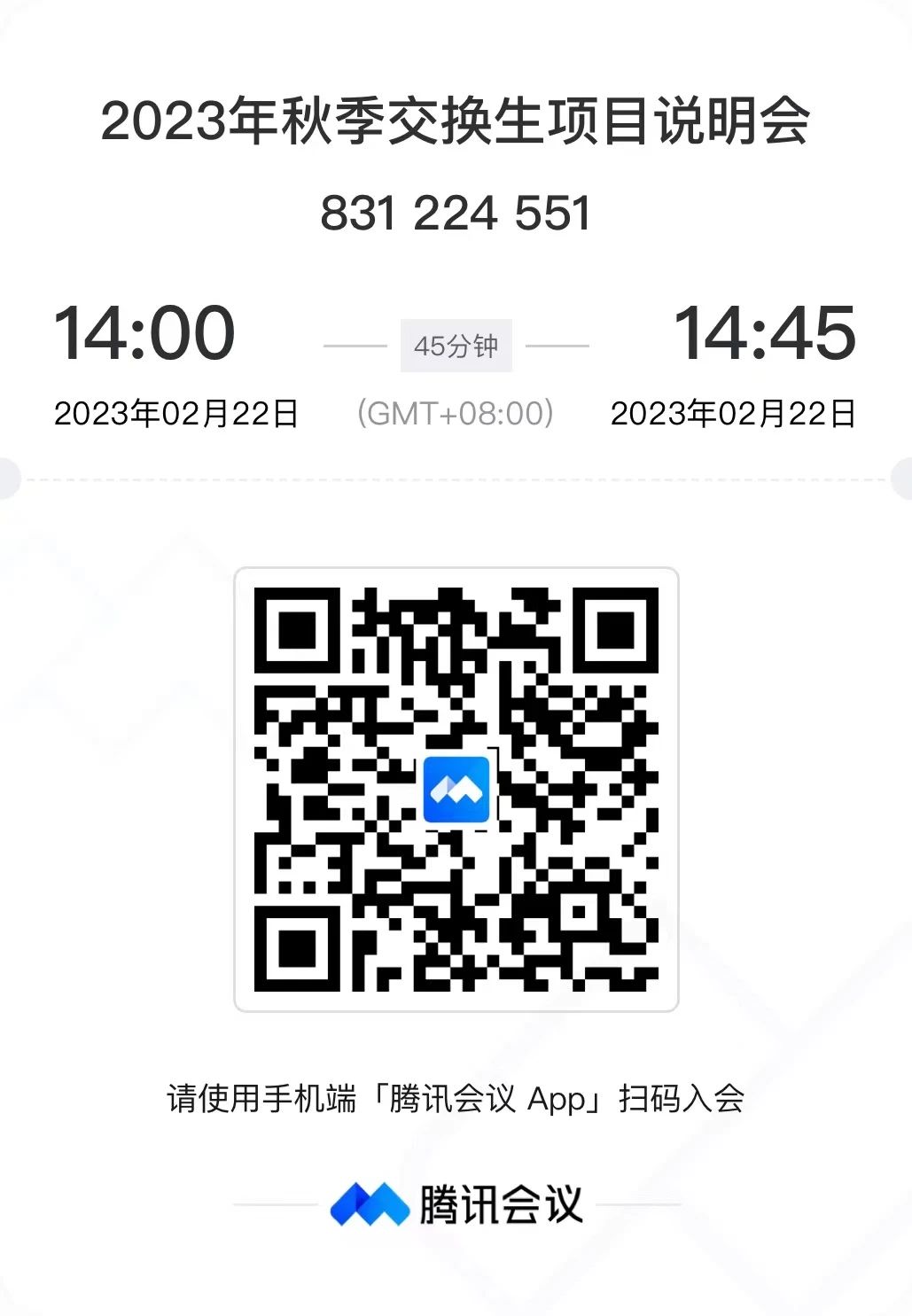 交换生项目线上说明会时间:2023年2月22日14:00形式:腾讯会议(831 224 551)主讲:国际处
