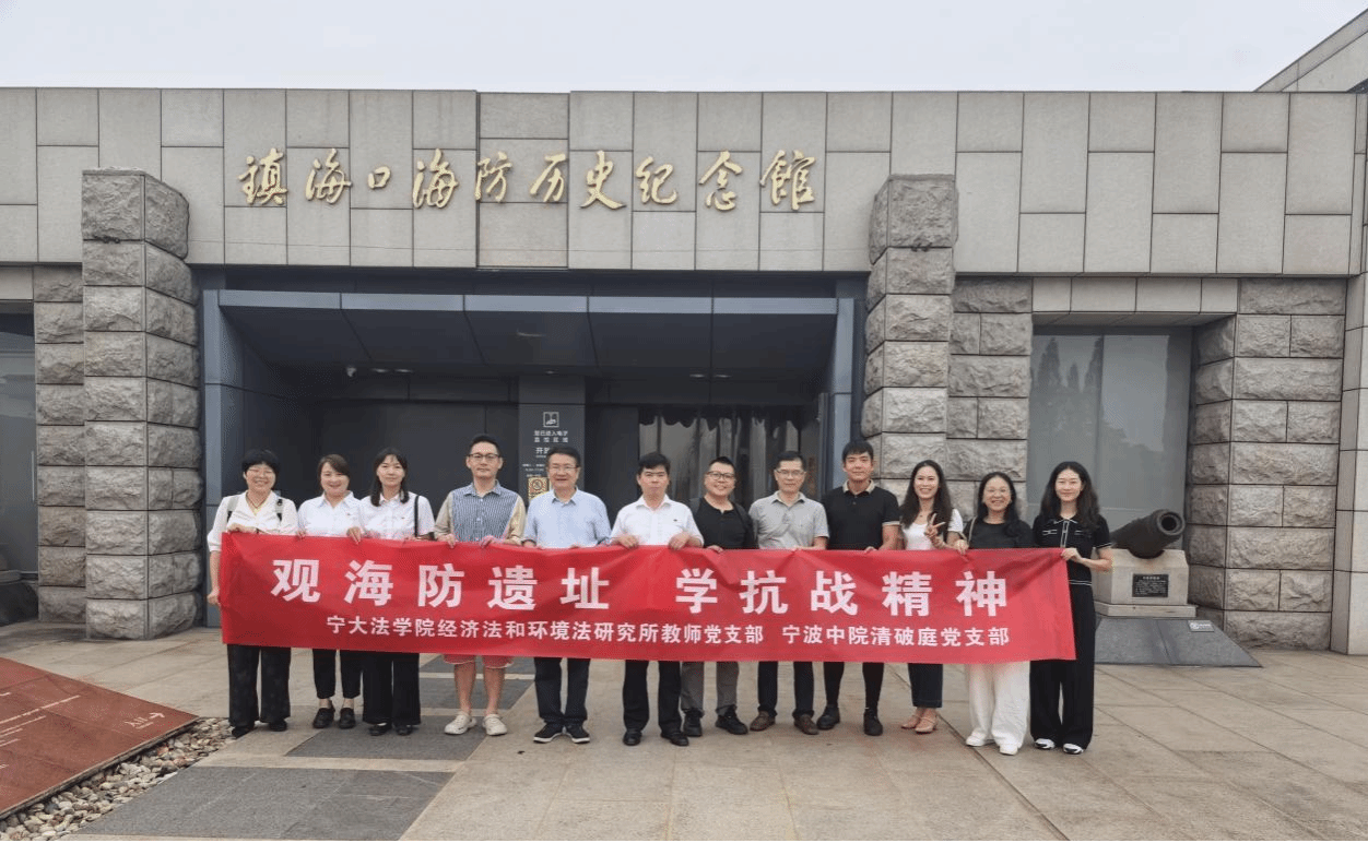 经济法和环境法研究所教师党支部与宁波中院清破庭党支部正式结对共建。为深化党建引领,弘扬爱国主义精神,双方党支部组织党员共同前往镇海口海防历史纪念馆开展“观海防遗址 学抗战精神”主题党日活动,重温抗战历史,传承红色基因。