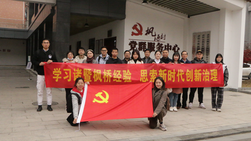公共管理和法学两专业人才培养和科学研究提出了新要求。2020年12月9日,公共管理研究所党支部、理论法学与刑法学研究所党支部和公共管理专业学生第四党支部,共同组织“学习诸暨枫桥经验,思索新时代创新治理”主题党日活动,共计18名师生参加了本次活动。上午,大家在导游带领下参观考察了枫源村党群服务中心、文化礼堂、文化长廊和村容村貌,了解村庄基本情况、治理体系、智能化服务设施和枫桥经验的生根与发展。