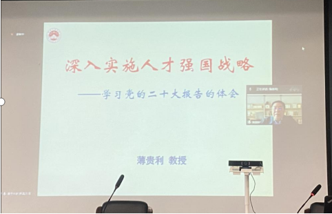 召开教职工理论学习,邀请薄贵利教授专题讲座《深入实施人才强国战略 学习党的二十大报告的体会》,薄教授结合党的二十大报告中提出的要深入实施科教兴国战略、人才强国战略、创新驱动发展战略,从现实意义、主要任务以及主要对策等三个方面,向全体与会人员深入解读了人才强国战略。