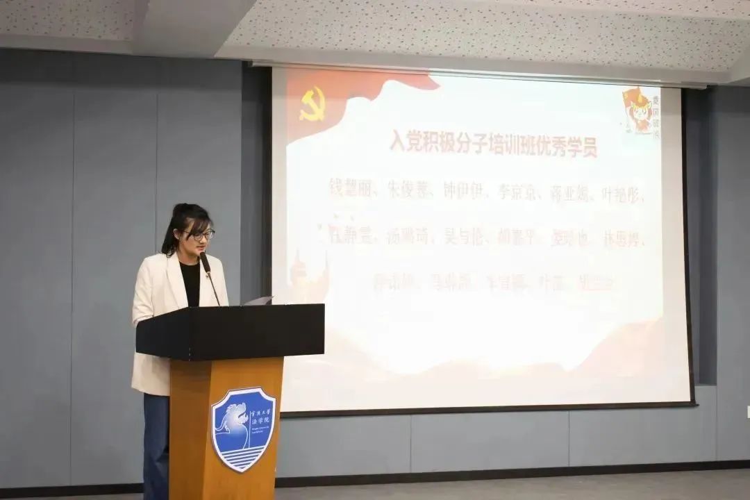 入党积极分子李京京、发展对象俞冰和预备党员周萍代表各班级进行了结业汇报。