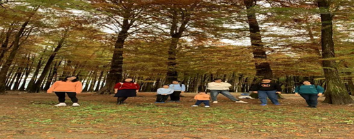 11月28日上午,老师们直奔四明湖。四明湖,“十里烟波九洞天,山藏灵秀水藏仙”。四明湖位于余姚千年文化古镇梁弄,四明山第九洞天境内,环湖皆山,七十二峰远近翠黛相间,历代名人高士留下众多轶闻传说。其水上红杉更是一景。初冬季节,衫叶已红,倒映水中格外美丽。四明湖水中红杉林秋景斑斓,十分耀眼,秋色中,疲惫了一周的身心得到美景的抚慰!