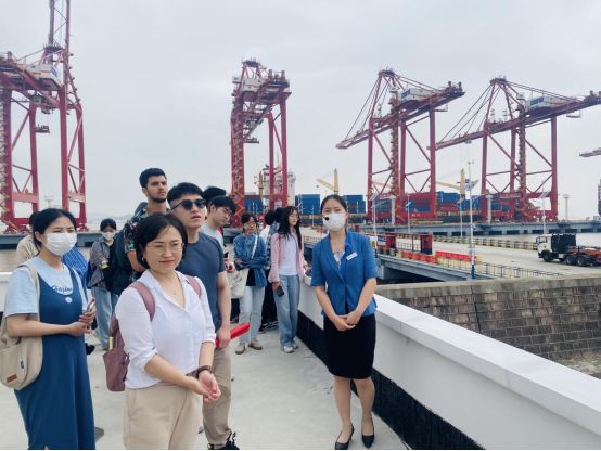 教师王婷婷、辅导员戴丽莉带领“海洋法”班的本科生、留学生,“海洋环境保护法专题研究”班的研究生参访了舟山甬舟集装箱码头有限公司。