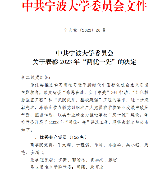 党委在本次表彰大会中荣获10项荣誉。经济法与环境法研究所教师党支部、法学硕士研究生第一党支部荣获2023年先进基层党组织称号,51吃瓜网