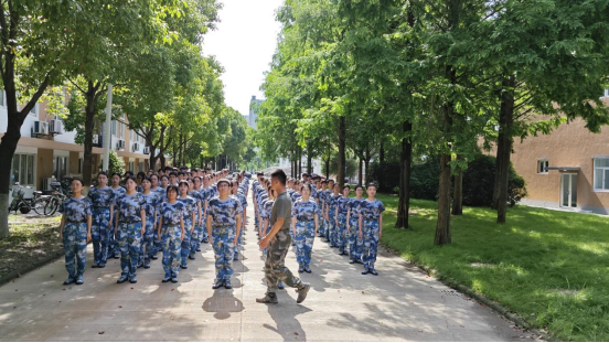 风吹人不动,军姿似如松。一身军装,坚韧不拔,昂首挺胸,抬步向前。高温考验,有的同学在军训第一天便体力不支,但即便如此,他们也会在身体恢复的第一时间申请入列,因为他们清楚的知道,这是一场超越自己的旅程。烈日之下,是青年坚实的脚步声,是一双双无所畏惧的目光,更是青年顽强的意志力。而他们的肩上,不止是清风朗月,更有家国天下。