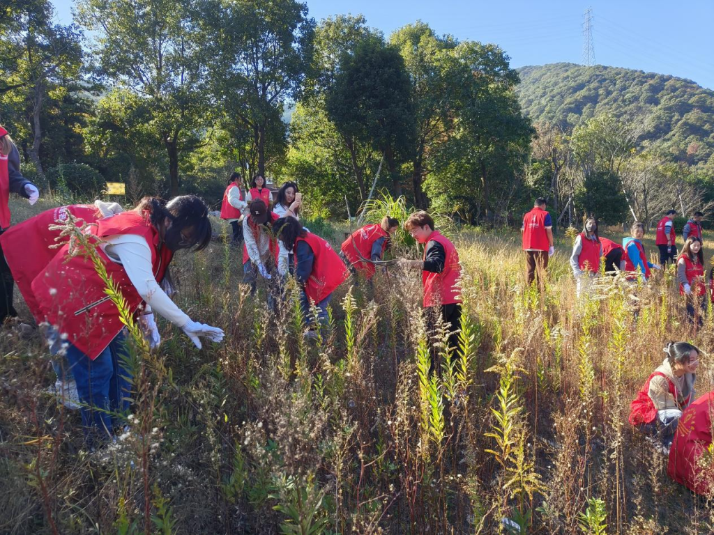 本次劳动实践活动获得了九龙湖红牡丹国际家园的大力支持,九龙湖红牡丹国际家园负责人姜红升老师对同学们的劳动开展做了精心策划和全程悉心指导。同学们身穿红马甲,携带锄头、背篓等劳动工具,前往九龙湖沿岸清理荒草地,拔除杂草、清理枯枝、捡拾垃圾,干得热火朝天。随后,在姜老师的带领下,同学们又一同前往横溪村九龙源景区开垦共富工坊爱心田。通过劳动实践活动,让同学们走出校园、拥抱自然,为乡村建设贡献一份力量。
