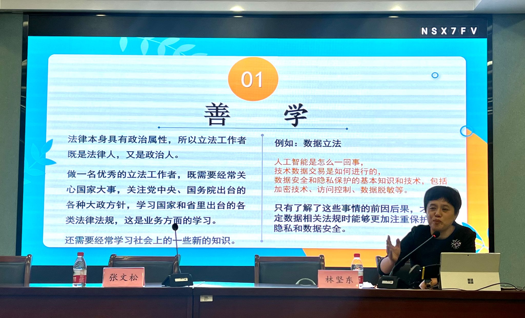 最后,结合习近平总书记对地方立法质量的要求,林处长就如何做好行政立法工作总结了三个要点:第一是善学。做一名优秀的立法工作者,既需要经常关心国家大事,关注党中央、国务院出台的各种大政方针,还需要经常学习社会上的一些新的知识。第二是多听。拓展民主立法的途径是行政立法过程中一件重要的事,要让更多的老百姓有机会参与立法,让更多的公众意见有机会让制定者听到。第三是时常换位思考。在立法过程中时常换位思考不仅能够促进公正平等,社会和谐,还能增强立法质量,提高公众信任。