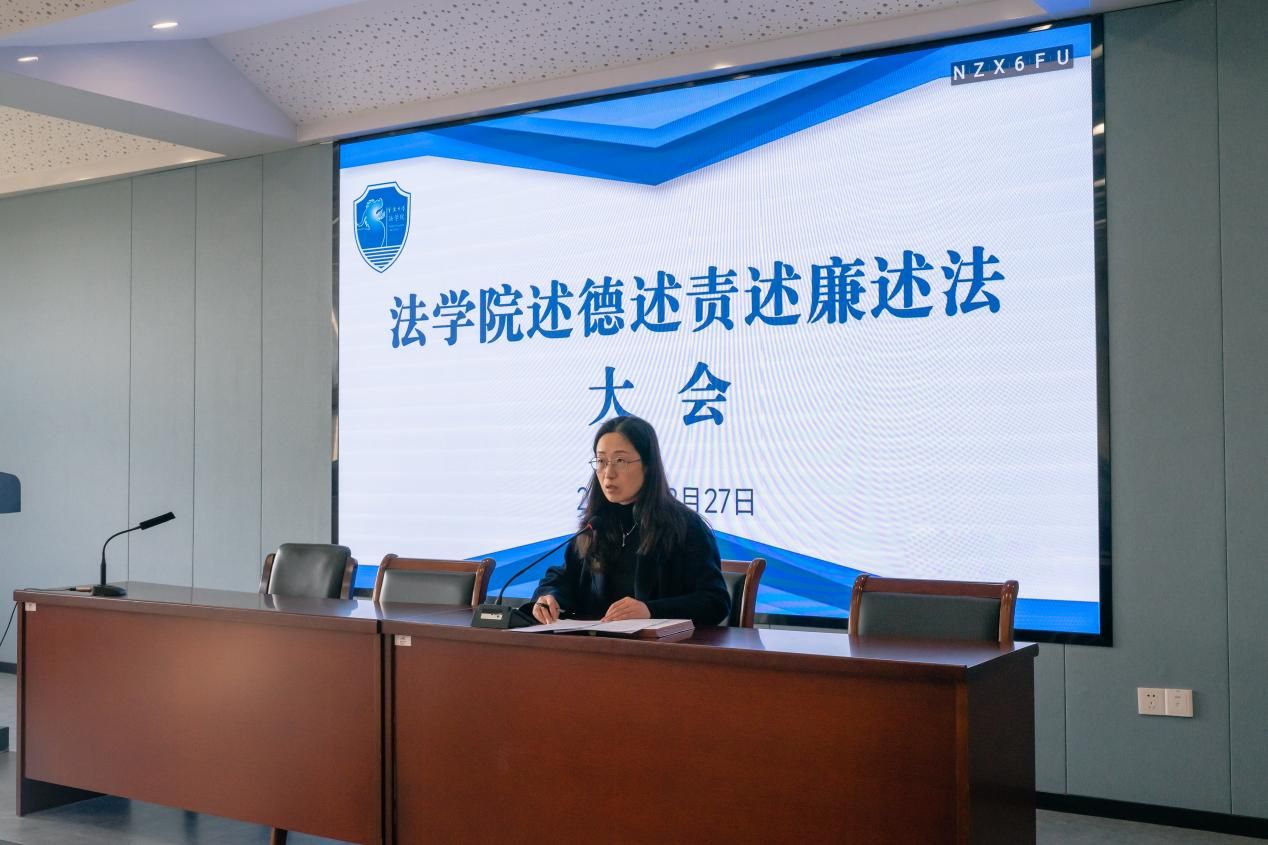 院长梁开银、党委书记孙芬娜分别在述德、述责、述廉、述法四个方面做了个人报告。梁开银院长同时从学院2023年的建章立制、学科建设、特色化人才培养、人才引进、系统性推进学院治理结构优化、存在问题等六方面做了总结报告,号召教职工履职尽责,挺膺担当,以习近平法治思想为统领,推动学院各项工作高质量开展。