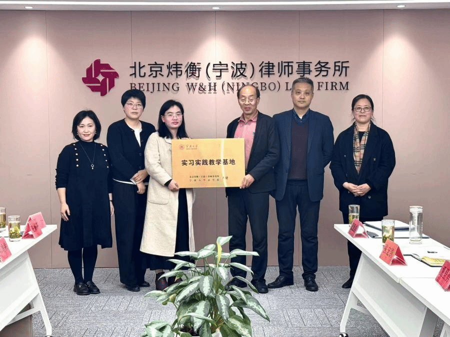 副院长王婉娟、法律系副主任郭靖祎,以及陈海波副教授、王婷婷博士一行前往北京炜衡(宁波)律师事务所参加仪式。炜衡律师事务所主任童登勇,执委会主任张宏凯以及其他合伙人出席了本次活动。