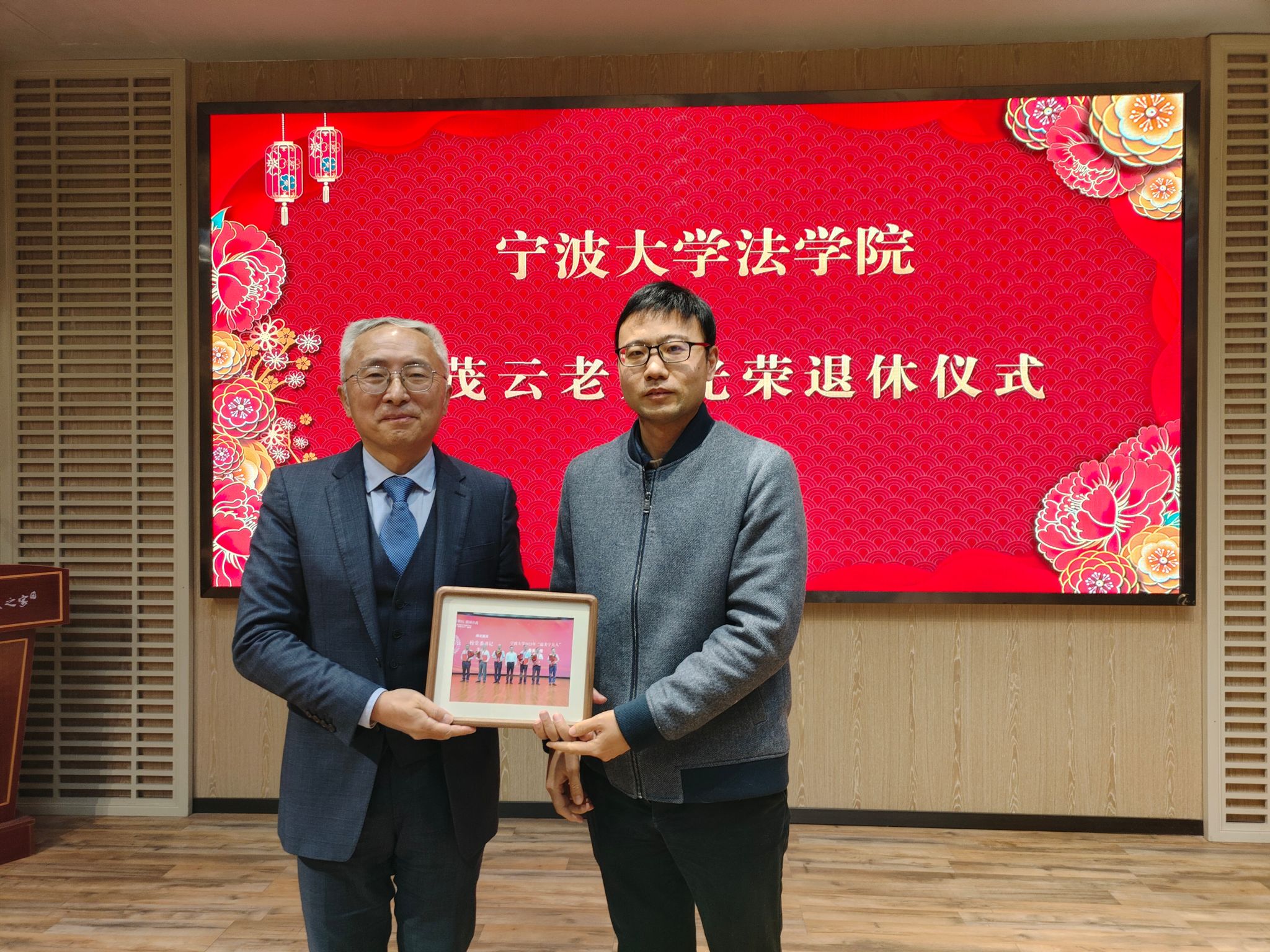 仪式开始前播放了董茂云老师在宁大耕耘的视频短片。曾经挥斥方遒的翩翩少年,如今受人尊敬的最美宁大教授,大家纷纷用掌声表达了对董老师的谢意和不舍。