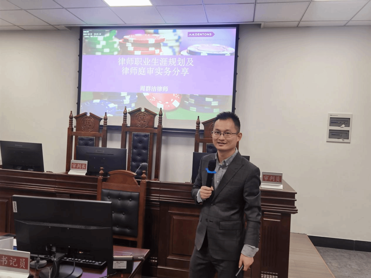 开始之际,周律师向大家介绍了自己的身份与所在的北京大成律师事务所,而后便围绕主题“律师职业生涯规划及律师庭审务分享”,从律师的定位、职业生涯规划建议与庭审技能培养三个切口展开对律师职业的相关看法。