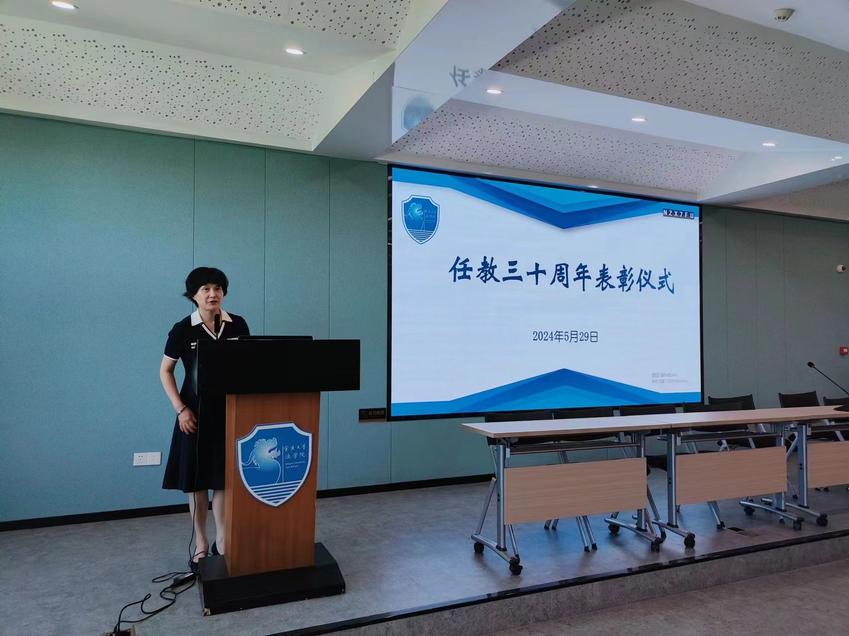 孙芬娜代表学院向受表彰教师表达敬意,勉励广大青年教师志存高远、敬业奉献,学习从教三十年教师的优秀品质,将这种精神传承并发扬光大,为学校高质量发展做出贡献。