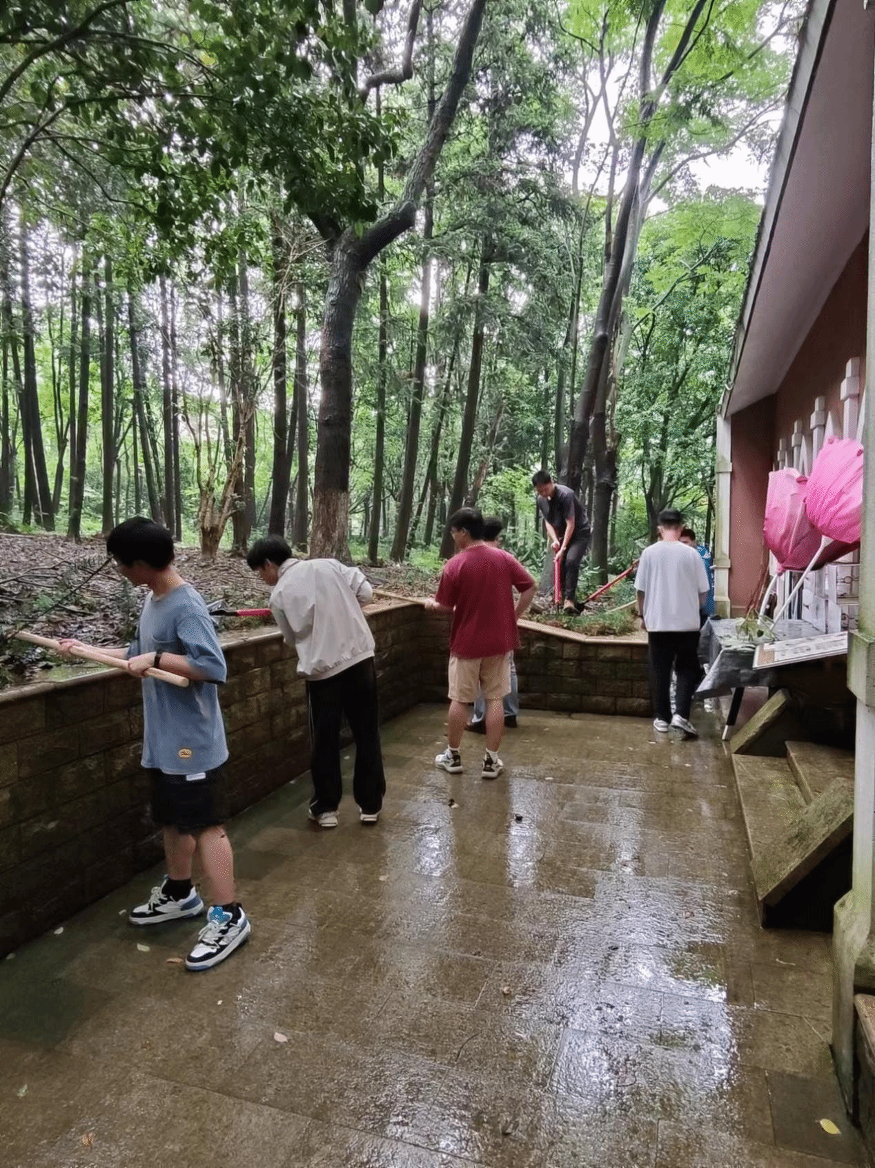 尽管阴雨绵绵,路面湿滑,但同学们最终克服困难,顺利完成了此次劳动实践任务。