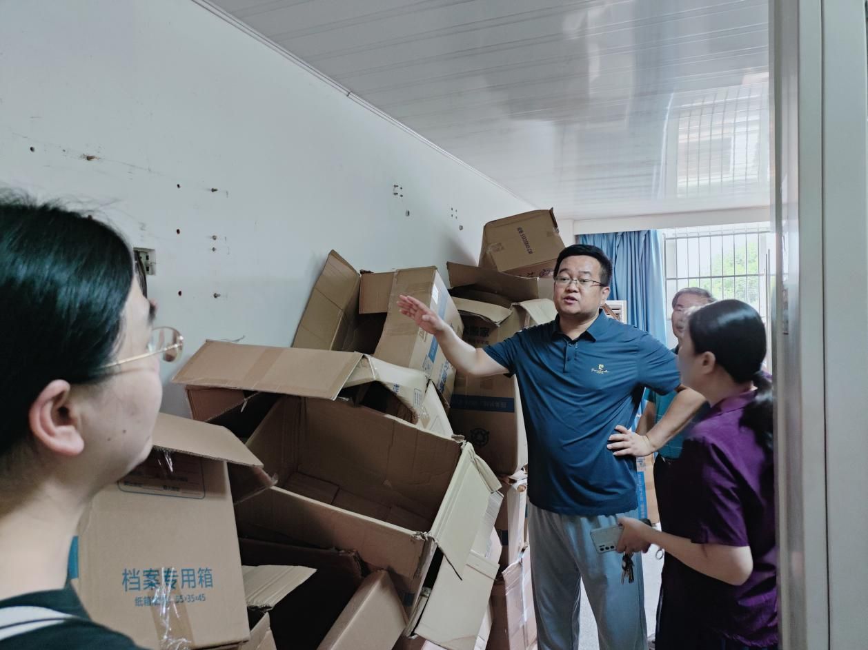 副院长王婉娟带领党政办负责人、实验室负责人、资料室责任人及楼宇责任人于7月12日上午在学院开展了暑期前安全隐患大排查。
