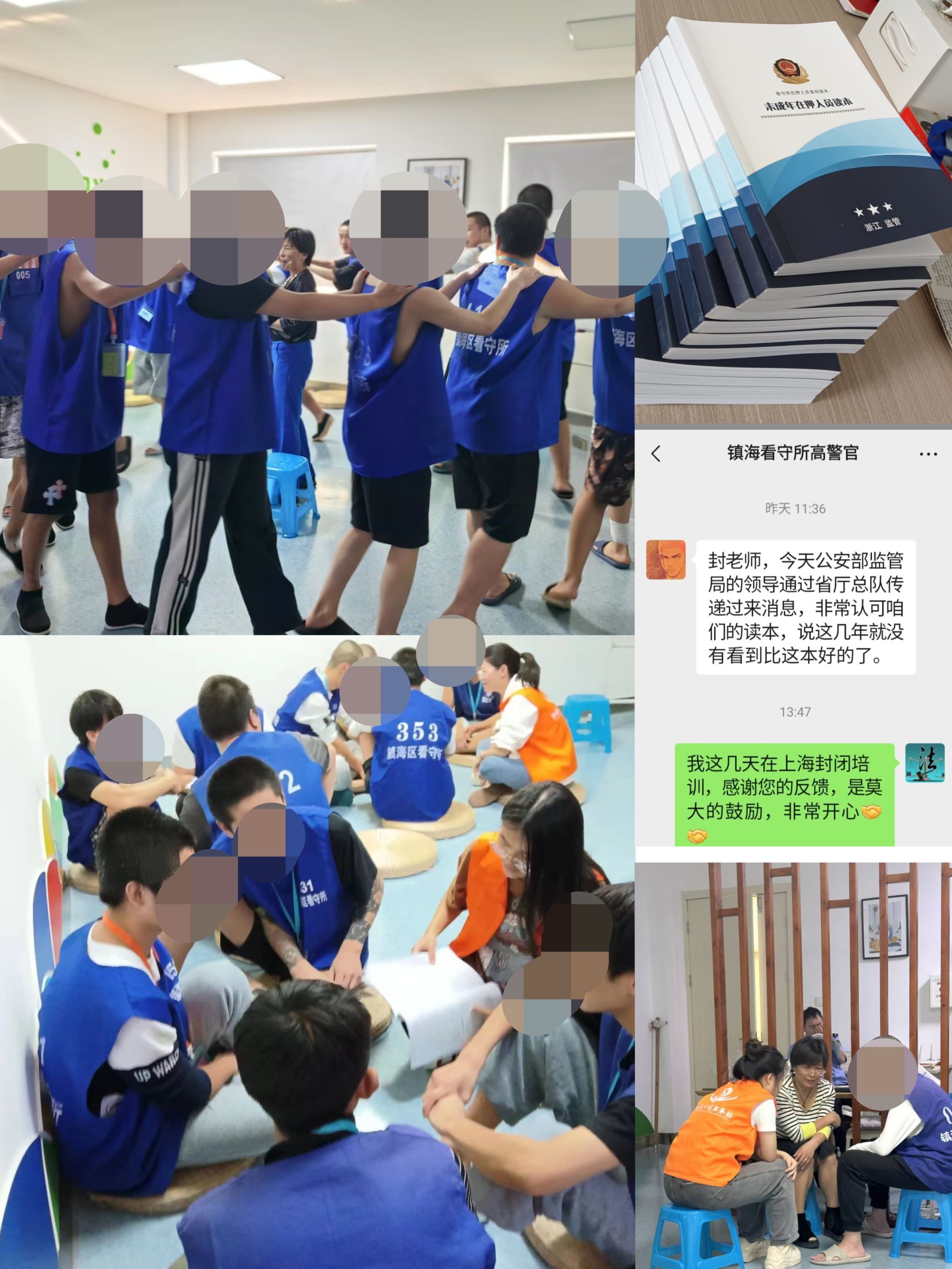 普法期间,封红梅老师发现徒法不足以自行,又考取了国家心理咨询师和社会工作师资质。她发现当前针对未成年在押人员的法律读本多是罗列监规纪律,没有针对未成年在押人员的年龄和心理特征,难以实现帮扶的初衷,就带领团队总结三年普法实践经验,以看守所未成年在押人员为原型,编撰了《未成年在押人员读本》。读本讲述了八名性格迥异、涉罪不同的未成年在押人员和看守所警官、心理咨询师之间围绕“管教帮扶”而演绎的一连串故事。十章23节中每节精心设置“案例、普法、德育、践行”四个环节,事例部分采用实例导入,普法和德育部分是明理深化,践行部分是知行合一、落到实处,受到公安部监管局的好评,目前已经成为浙江监管部门帮扶在押未成年人的首选教材。