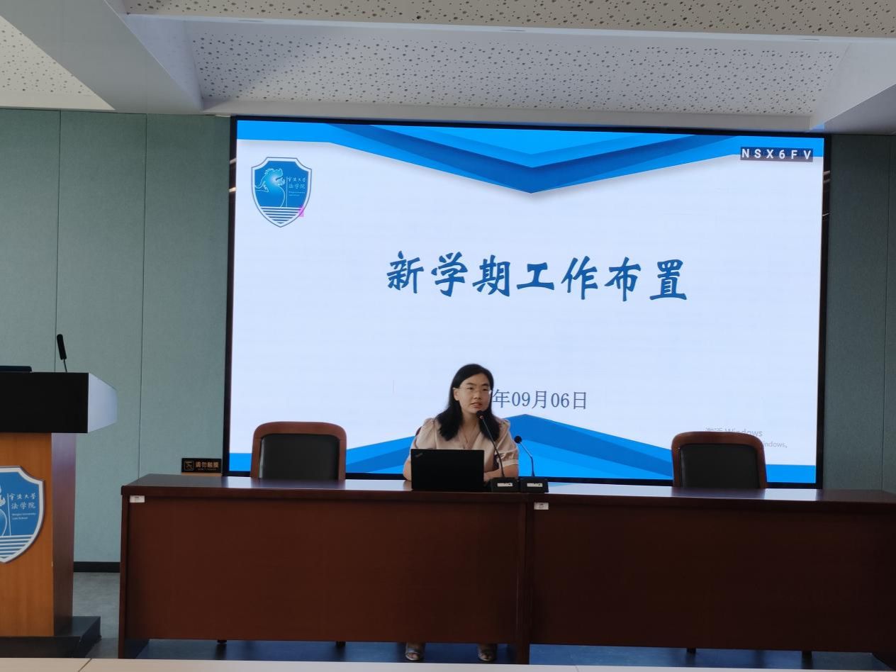 院长梁开银从成功入选市品牌专业、全校文科第一班之称的涉外法治拔尖创新班的创建、涉外法治微专业的课程上线、涉外法治基地、浙东法学期刊的创刊到科学研究等七个方面,对上半年的工作做了总结,肯定了成绩,总结了不足,对下阶段工作做了布置。他强调,要把日常工作和重点工作一体化推进,学科和专业建设走特色化发展之路,围绕博士点申报的中心工作,要脱虚向实,打破学科界限,向学科发展方向聚焦,在破解难题中展现作为,在推动发展中彰显担当,鼓励全体教职工用饱满的工作热情投入到新学期的工作中。