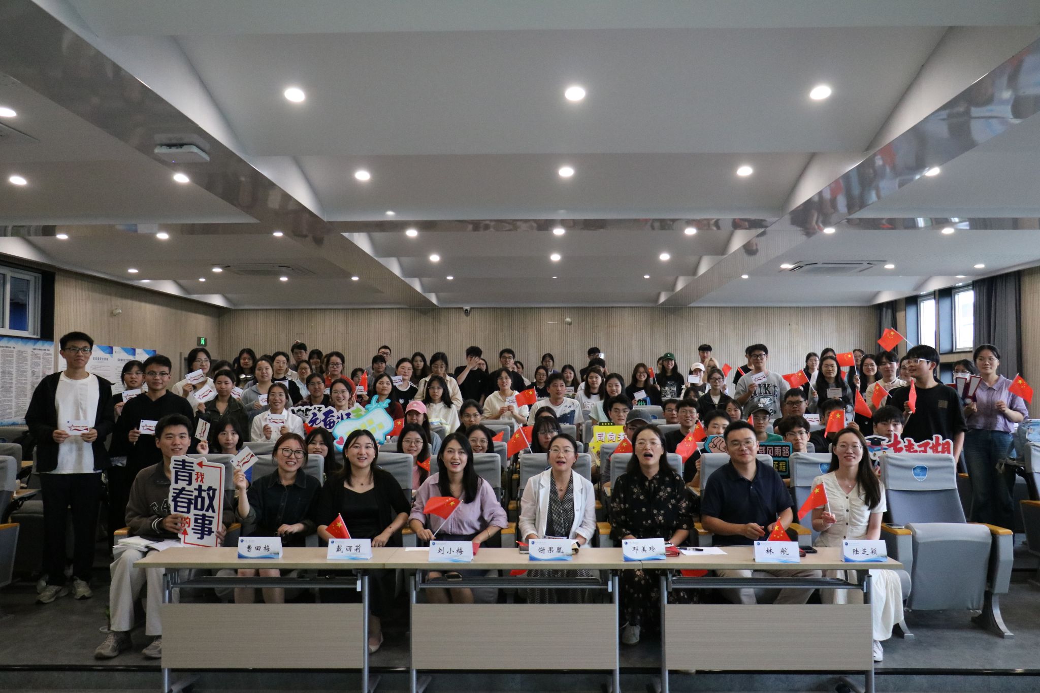“同庆盛世 锦绣中华 —— 我为祖国送祝福” 活动在 217 报告厅举行,喜迎祖国 75 华诞。学院党委副书记、纪委书记谢果凰及学工办全体辅导员、学生党支部书记、团支部书记、班长和学生组织骨干共同参与,为祖国送上真挚祝福。