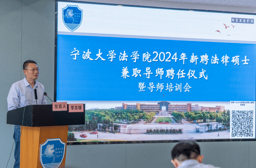 院长梁开银教授、副院长何跃军教授、法律硕士教育中心常务副主任乔宜梦副教授、副主任张文松博士出席此次会议。来自宁波市中级人民法院、宁波市检察院、舟山市检察院、台州黄岩区人民法院、宁波鄞州区人民法院、宁波市仲裁委、中共宁波市委党校、宁波市疾控中心、宁波中浦投资控股集团有限公司、北京盈科(宁波)律师事务所、北京德恒(宁波)律师事务所、北京大成(宁波)律师事务所、北京康达(宁波)律师事务所、上海汉盛(宁波)律师事务所、浙江导司律师事务所、浙江合创律师事务所、浙江京衡(宁波)律师事务所、浙江海泰(奉化)律师事务所、浙江六和(宁波)律师事务所、浙江纽华律师事务所、浙江元甬律师事务所等20余家单位的37名新聘法律硕士兼职导师参加了聘任仪式。兼职导师聘任仪式由乔宜梦副教授主持。