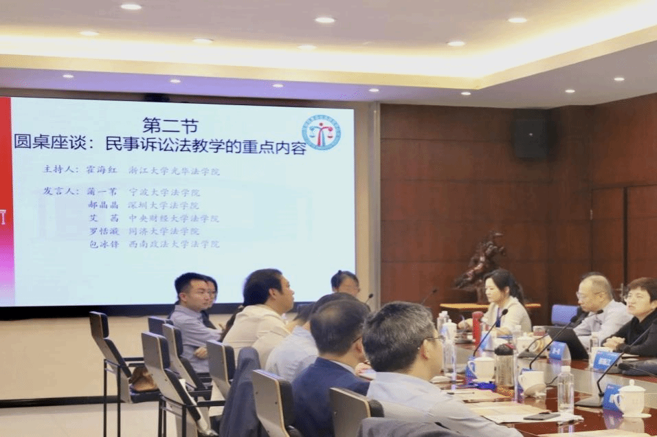 发起,其目的是为了深入探讨民事诉讼法的教学方法和教学改革,促进民事诉讼法教学的深入发展,共同推动民事诉讼理论研究和专业教育的一体化发展,培养新时代的高素质法治人才。第一届“民诉法教学连线”于2019年在北京大学召开,主题是“民诉法的案例教学”;第二届“民诉法教学连线”于2023年在浙江大学召开,主题是“民事法一体化”。本届研讨会的主题是“《民事诉讼法学》的教学方法”,研讨会采取主题报告+圆桌座谈的形式展开,共分为四节,分别围绕“民事诉讼法教学的内容构成”“民事诉讼法教学的重点内容”“民事诉讼法教学的逻辑体系”“民事诉讼法教学的讲解顺序”四个专题进行研讨。