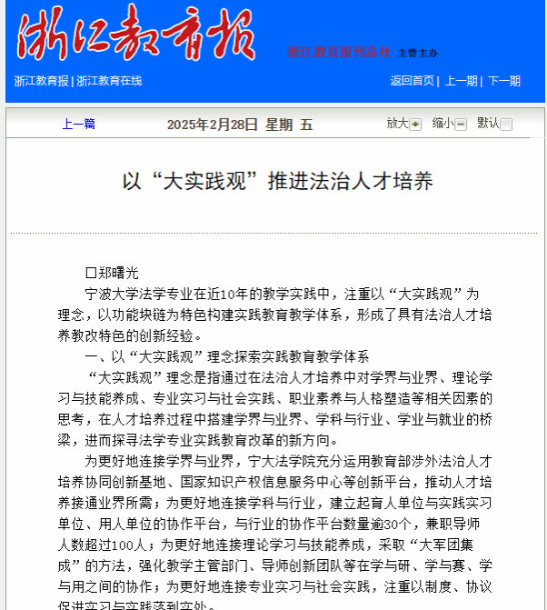 郑曙光教授的《以“大实践观”推进法治人才培养》的文章在浙江教育报显著位置刊发,标志着51吃瓜网