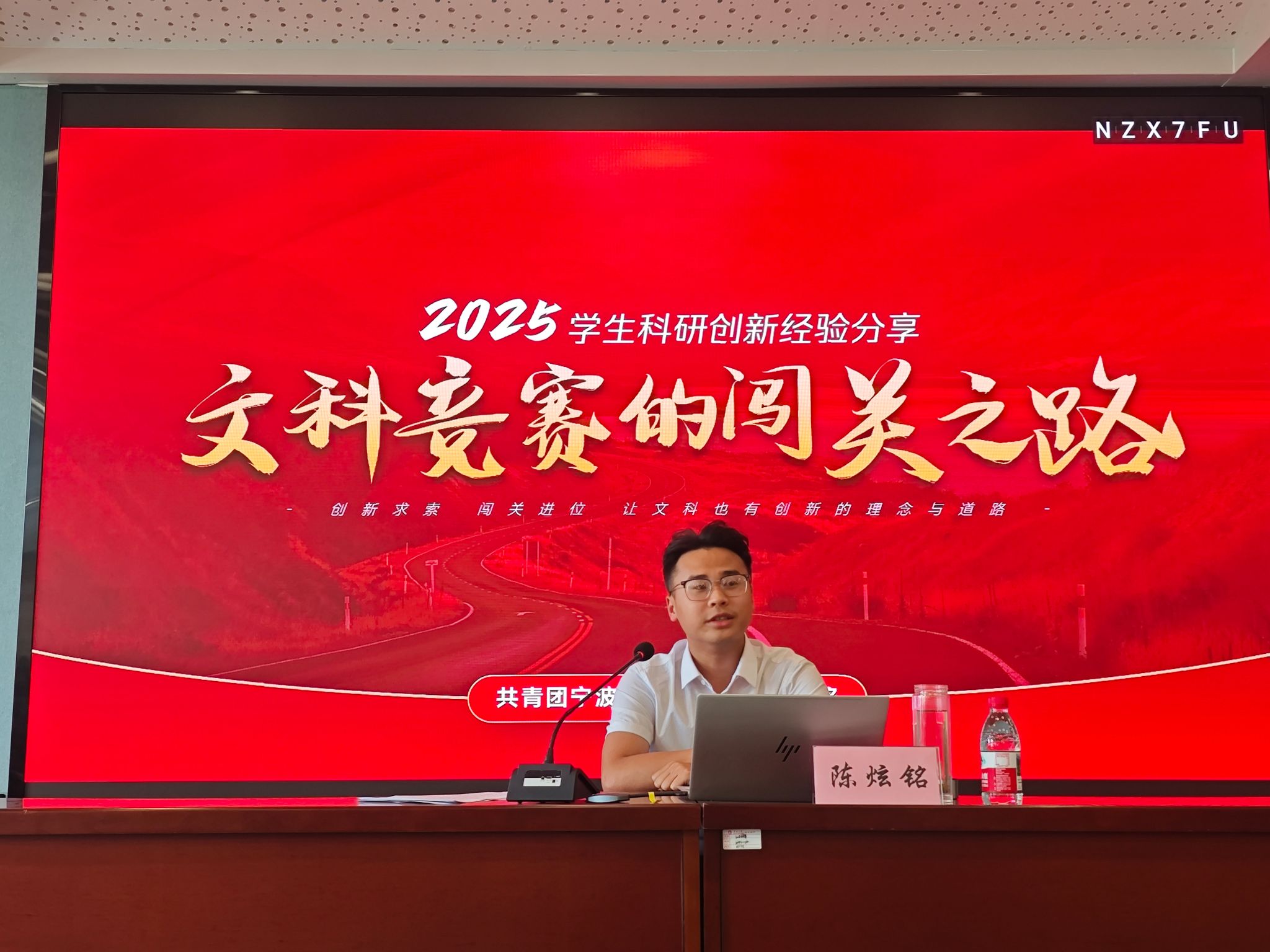 2023级中国史研究生专业研究生陈炫铭结合自己曾获中国国际大学生创新大赛金奖、“挑战杯”中国大学生创业计划竞赛金奖的经验,就科研竞赛的认识关、准备关、突破关进行讲解,强调参加学科竞赛所需要具备的品质与能力,以及好的科研竞赛选题和清晰的框架的意义。对初次接触竞赛的学弟学妹,他真诚寄语:“不做创新路上的钉子,做世界永远的学生。”现场掌声雷动。