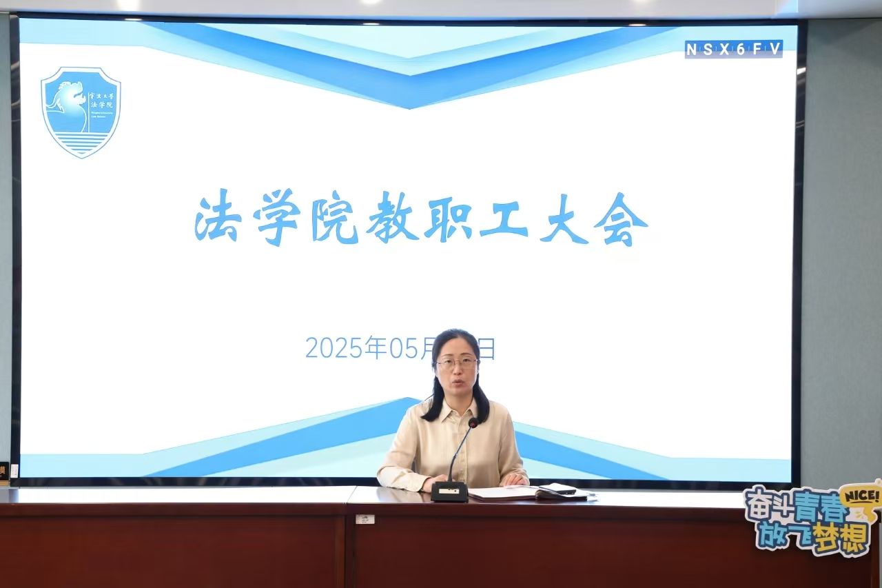 在学院217报告厅召开全体教职工大会。会议由学院党委书记孙芬娜主持,学院班子成员、全体教职工参会。