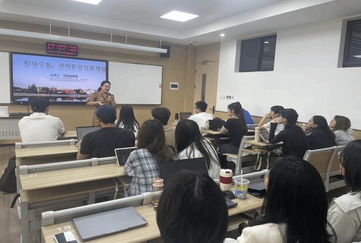 卫律师还在讲座的互动环节与在场同学进行了深入交流。同学们踊跃提问,涉及考研与考公的选择、涉外律师业务的发展前景、律师职业的工作生活平衡等多元话题。卫律师以其丰富的执业经验和人生阅历,从法律专业学习、律所招聘标准和流程、律师执业过程中面临的挑战等多个维度,耐心地为同学们提供了全面而细致的解答,使同学们对律师职业有了更加直观和深入的认识。