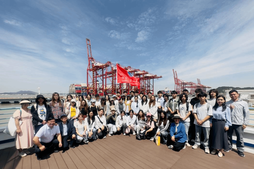 经济建设是城市发展的中心环节,宁波舟山港是宁波市经济发展的龙头。老师与同学们慕名抵达被誉为“东方大港明珠”的宁波舟山港金塘港区大浦口集装箱码头,进行了实地参观与学习。在大浦口集装箱码头自动驾驶试验区,远控桥吊精准舞动,无人集卡有序穿行,一幅智能化作业全景图在眼前展开。通过技术人员详实的讲解,同学们对舟山港的各大港区分布有了基础性了解,对全自动化作业流程智慧链的发展历程、核心技术架构、具体工作流程形成了深刻的认识,切实体会到了技术创新是如何重塑港口管理效率与国际竞争力的。根据工作人员的介绍,同学们了解到舟山港不仅以自动化领跑行业,更依托“海丝港口合作论坛”构建全球港口治理网络,持续以绿色低碳技术赋能港口运营,发挥着舟山口岸现代化集装箱码头开拓者的领头作用。