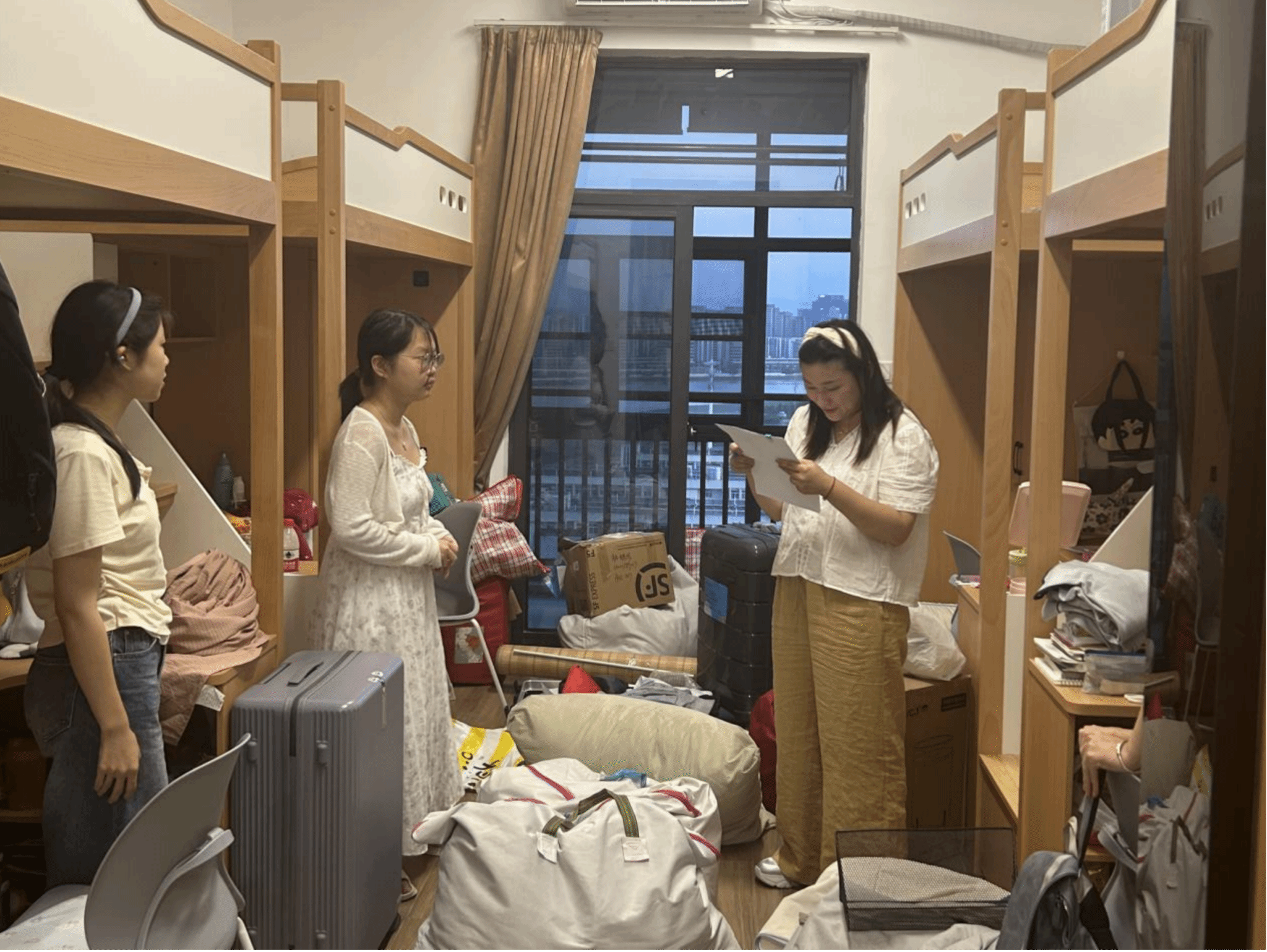 搬迁工作基本结束后,院党委副书记谢果凰带领班主任及辅导员深入学生寝室进行走访慰问。老师们走进一间间宿舍,与同学们亲切交流,仔细询问大家对新寝室的感受,认真倾听同学们在搬迁后遇到的问题与需求。对于同学们提出的疑问,老师们都耐心解答。通过此次走访,学院进一步拉近了与同学们的距离,让同学们在新环境中感受到了学院的关爱与重视 。
