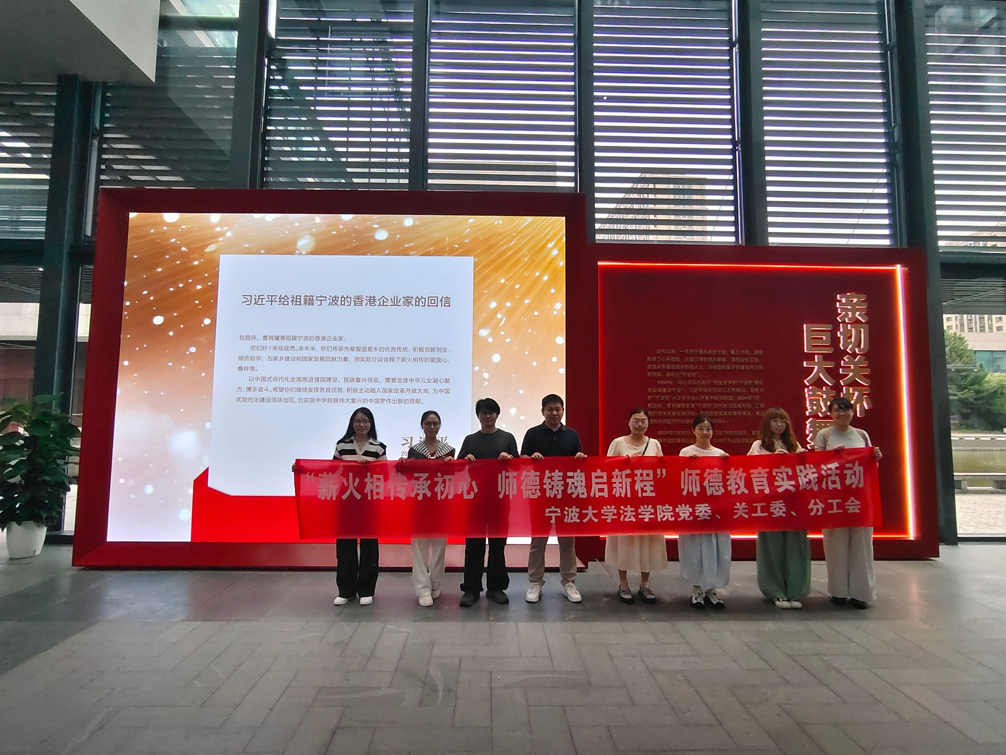 党委深入贯彻落实习近平总书记关于教育的重要论述,强化青年教师师德师风建设,联合关工委、分工会以“薪火相传承初心·师德铸魂启新程”为主题,组织学院青年教师开展师德教育系列活动。通过“五老”讲座与宁波帮博物馆参观学习等环节,将爱国主义教育与师德建设深度融合,激励青年教师以宁波帮“诚信、务实、开放、创新”的精神为镜,践行立德树人使命。