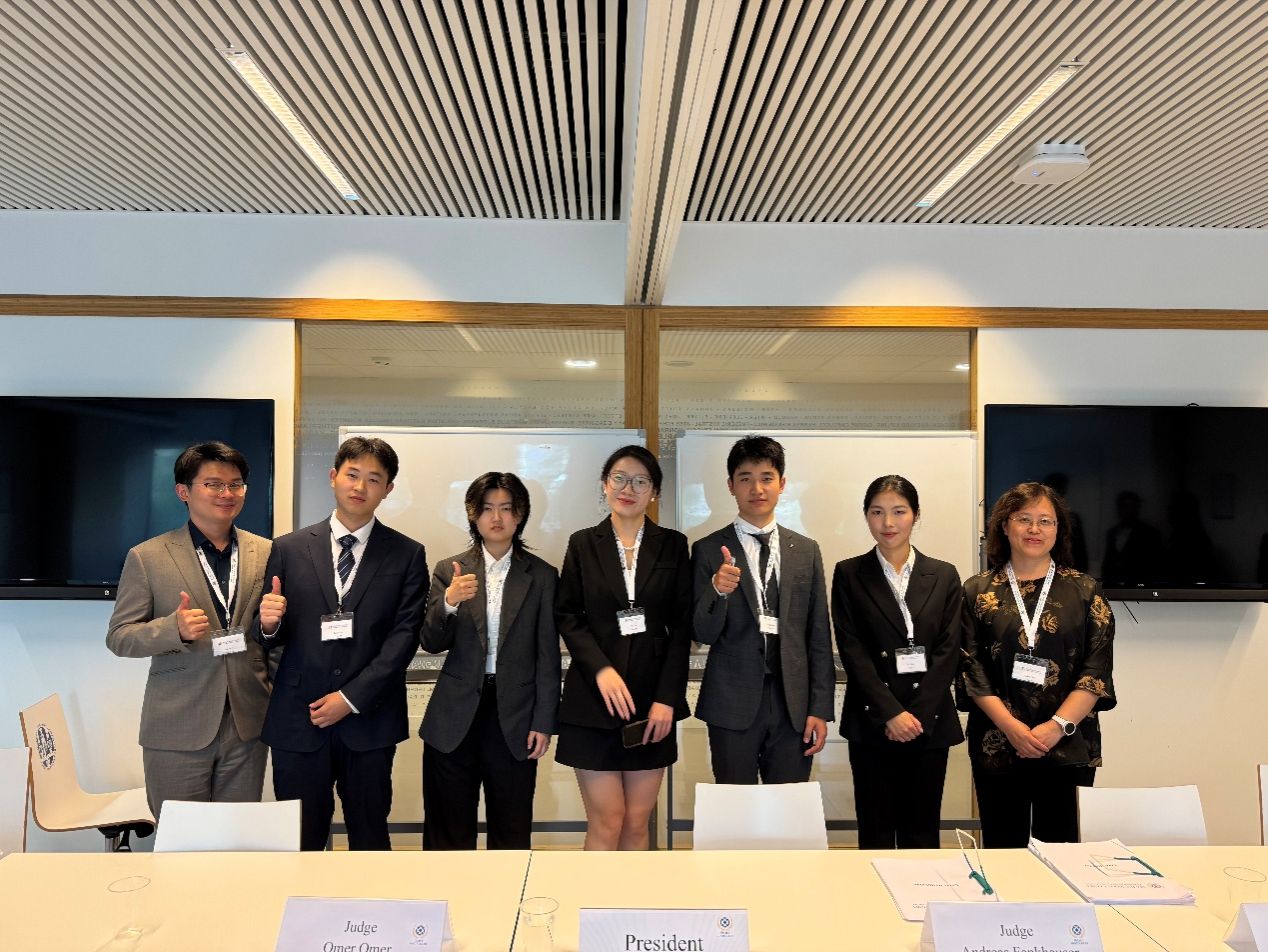 教师陈海波、顾天杰担任教练,2022级法学专业本科生郝韵、周妤、2023级法学(英语特色班)专业本科生朱航飞担任庭辩员,2022级法学专业本科生陈添、2023级法学专业本科生罗婧担任研究员, 2022级本科生熊诗艺、李烨琼以及2023级本科生汪源、金之言、赵灵儿、胡凯轩在国内鼎力支持。赛队还得到了2021届毕业生曾体皓学长的专业指导和多方面帮助。