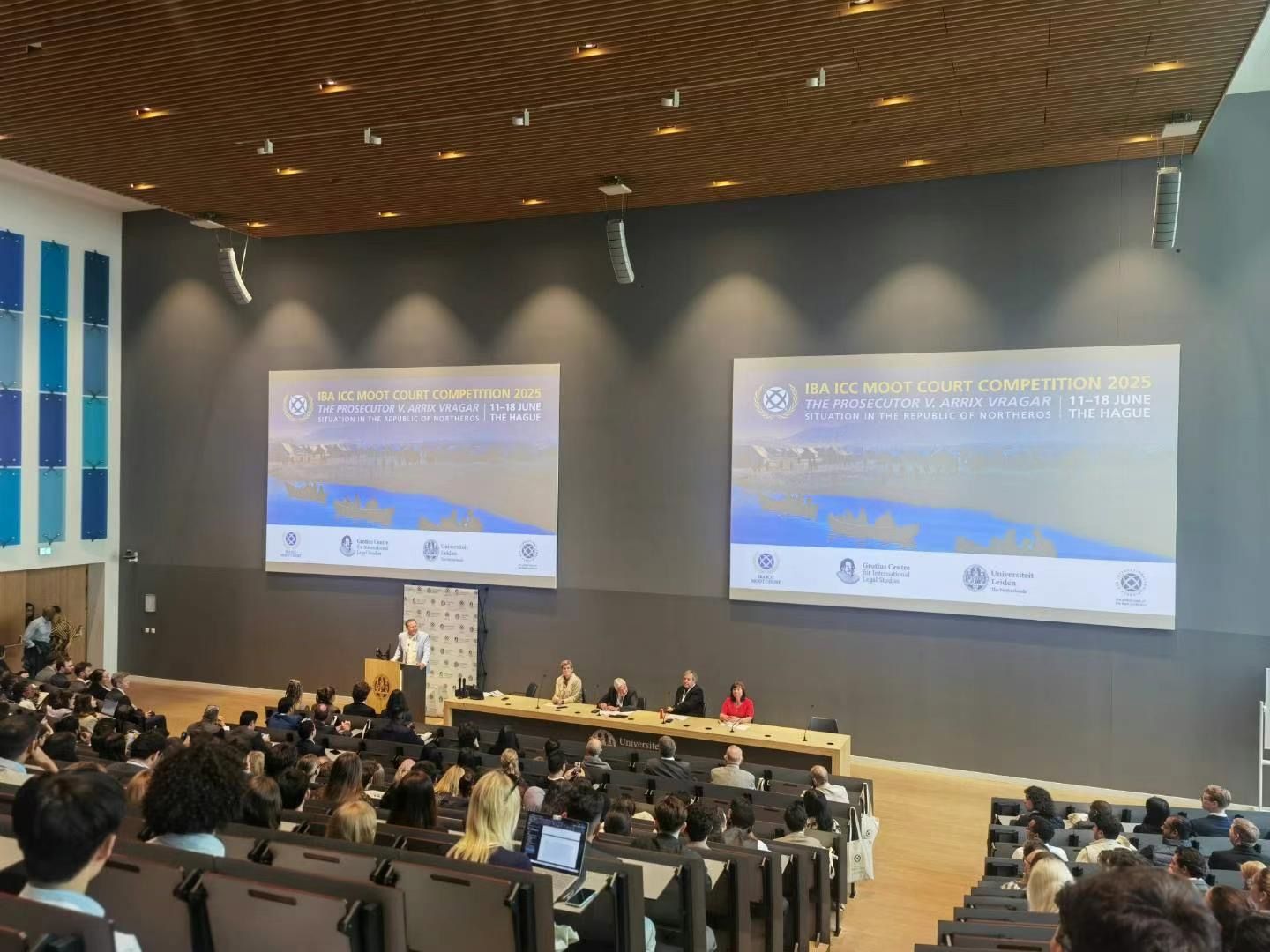 在此后的几天时间里,代表队经历了六轮高强度庭辩鏖战。检方庭辩员周妤先后对阵上海对外经贸大学队、柬埔寨赛队及其他欧美代表队;受害者方庭辩员朱航飞先后对阵中国香港代表队、以色列赛队及其他欧美代表队;辩方庭辩员郝韵先后对阵中国澳门代表队、澳大利亚赛队及其他欧美代表队。比赛既有国内赛对战格局的巧妙复刻,与国内赛劲敌再遇海牙,更有来自以英语为母语的判例法国家赛队的天然压力。每一场庭辩,队员们都保持冷静的头脑、稳定的心理,努力克服语言障碍和法律体系差异,以百分百的专注度读懂问题、理解问题、答好问题,展现了准备充分、功底扎实、专业自信、积极应变、坚定拼搏、团结协作的宁大风采,取得了初赛第54名的好成绩。