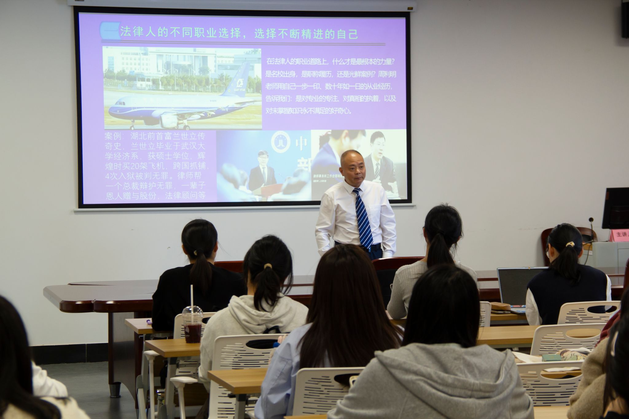 在分享会的开始,李律师从湖北前首富兰世立的传奇史说起,启发在座法学生们对从业本质问题的思考:在法律人的职业道路上,什么才是最根本的力量?李律师的声音坚定而富有力量:最根本的力量是对专业的专注、对真相的执着,以及对未掌握知识永不满足的好奇心。李律师从心出发的真诚分享,相信在座各位都有所触动,有所收获~