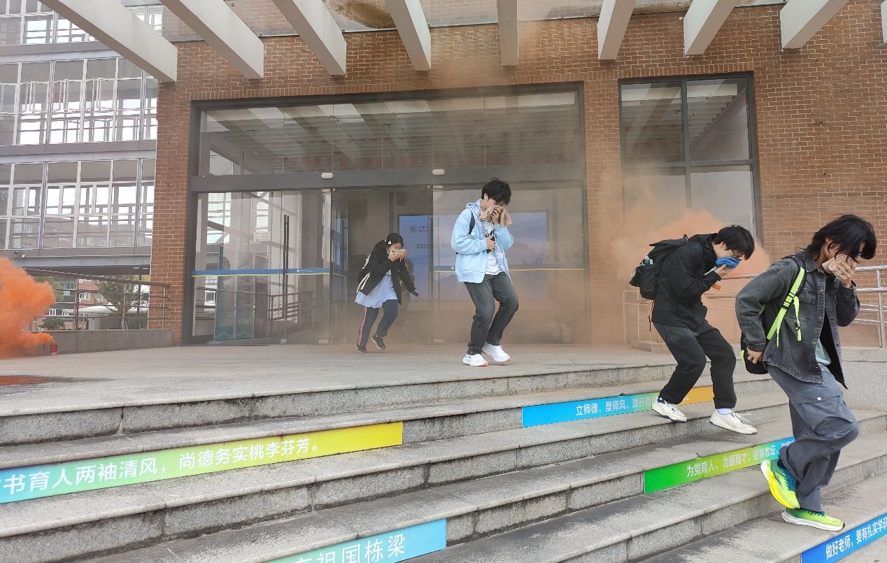 第二阶段为:模拟火灾逃生演练。随着警报声响起,演练正式开始。参与师生在党政办负责人指挥下,按照预定疏散路线,迅速、有序地从教学楼各楼层撤离至安全区域。整个演练过程紧张有序,师生反应迅速,达到了预期效果。演练结束后,消防办工作人员对疏散过程进行了点评,并现场演示了正确的逃生姿势和注意事项,进一步强化了师生的实战应对能力。