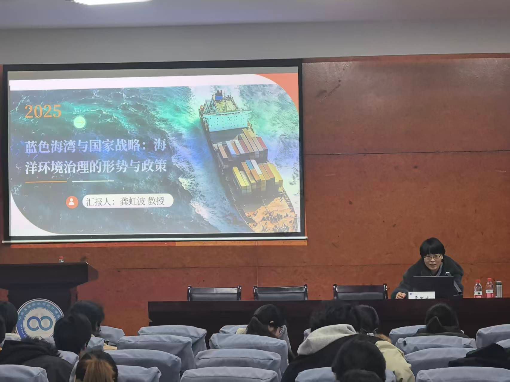 在包玉书九号楼317报告厅举办“形势与政策”讲座。本次讲座特邀龚虹波教授主讲,以《蓝色海湾与国家战略:海洋环境治理的形势与政策》为题,立足国家海洋强国战略全局,聚焦海洋生态环境保护现实,为现场师生呈现了一场视野宏阔、内涵深刻、案例生动的思政公开课,有效激发了青年学子守护海洋的责任感与使命感。