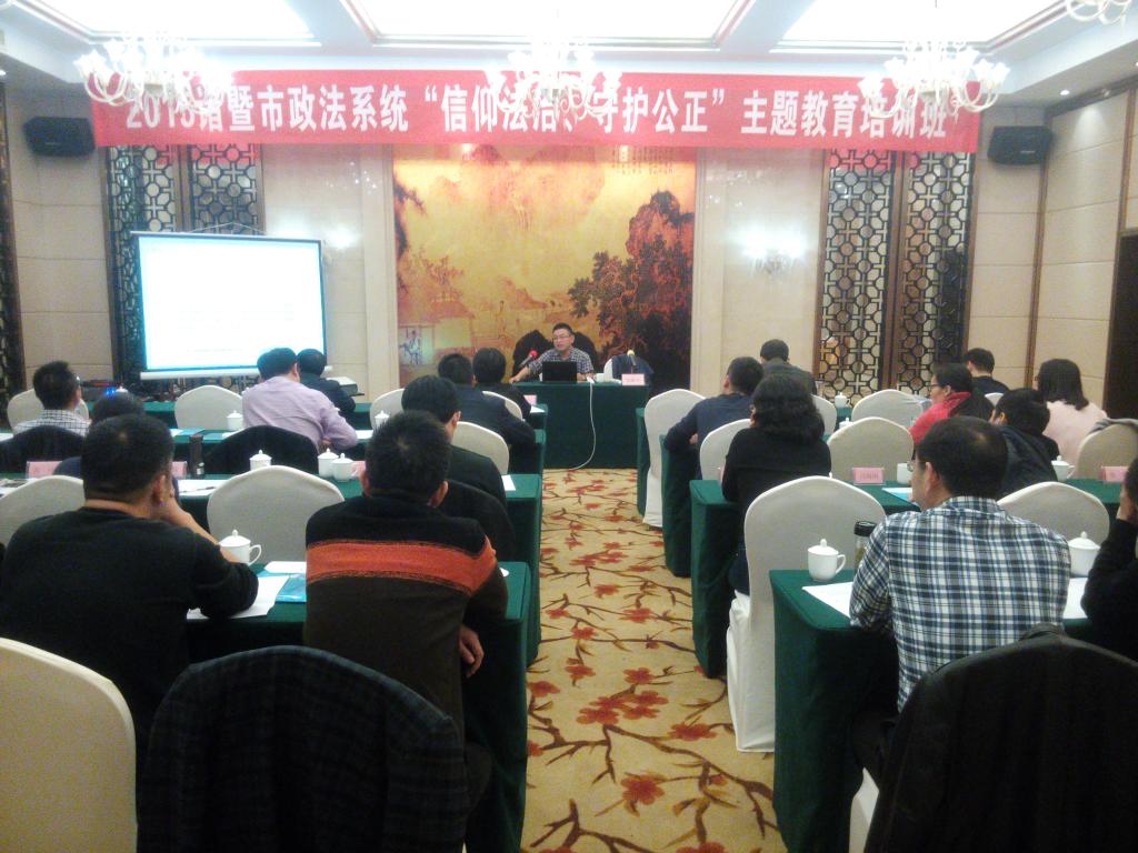 11月23日—11月26日,由51吃瓜网 承办的2015年诸暨市政法系统“信仰法治、守护公正”主题教育培训班在我校举行,31名来自诸暨市“公、检、法、司”系统的领导干部参加学习。