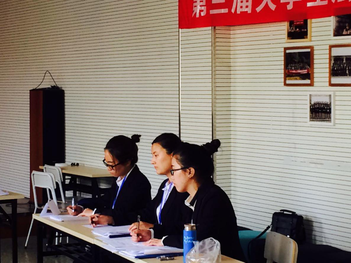 法学会组织,在锦绣活动中心306、308教室同时进行。组委会邀请了冯一文、陈海波、姜洪明、龚文杰四位老师以及邱滨泽、王淑君、金梦仙、徐海萍四位学长学姐担任评委。