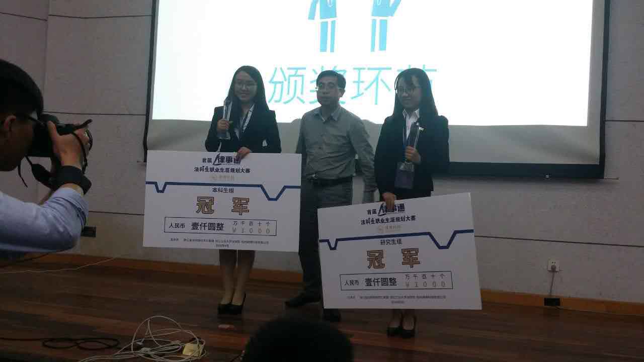 本科生杨磊、研究生夏君洁同学均晋级决赛。浙江省司法厅、浙江省检察院、杭州市律师协会、浙江工业大学等部门相关领导出席并担任评委。省内近20家律所的主任或合伙人也出席了本次比赛。
