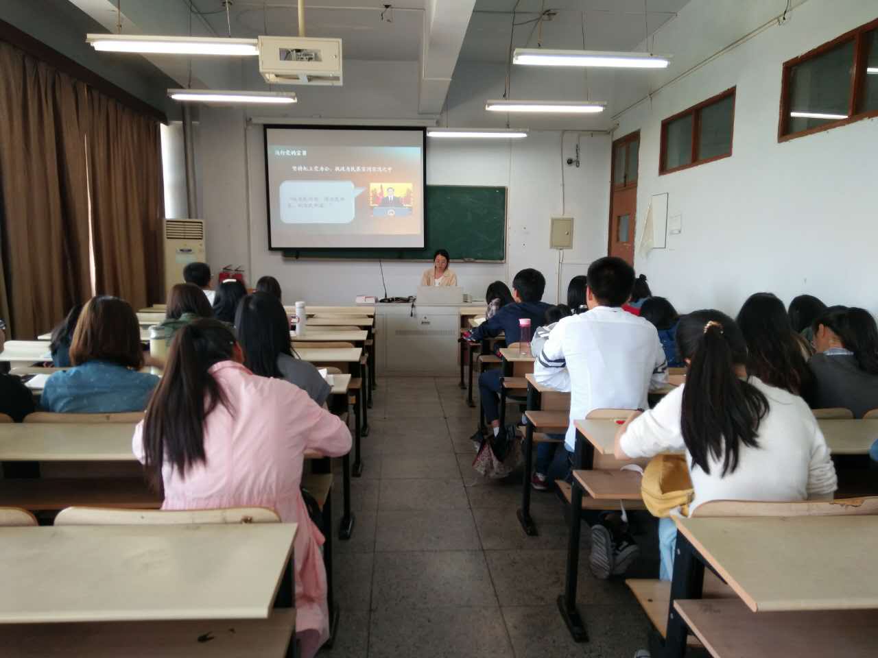 第三十四期入党积极分子党校培训第七讲在教学楼顺利开讲。本讲由第三十四期积极分子党校班主任马春燕老师主讲,主讲内容为中共共产党的宗旨。