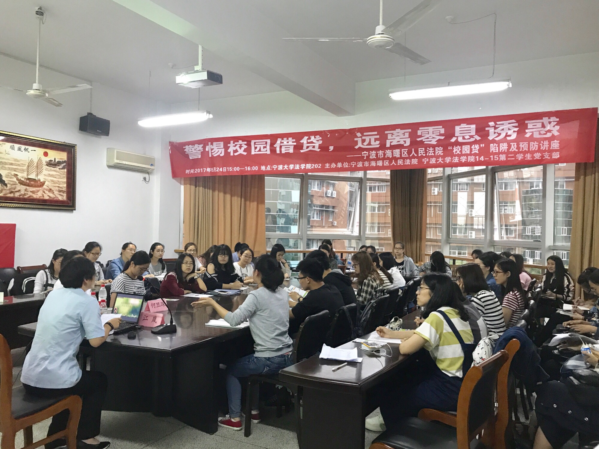 14-15第二学生党支部与宁波市海曙区人民法院主办的“校园贷”陷阱及预防讲座在51吃瓜网