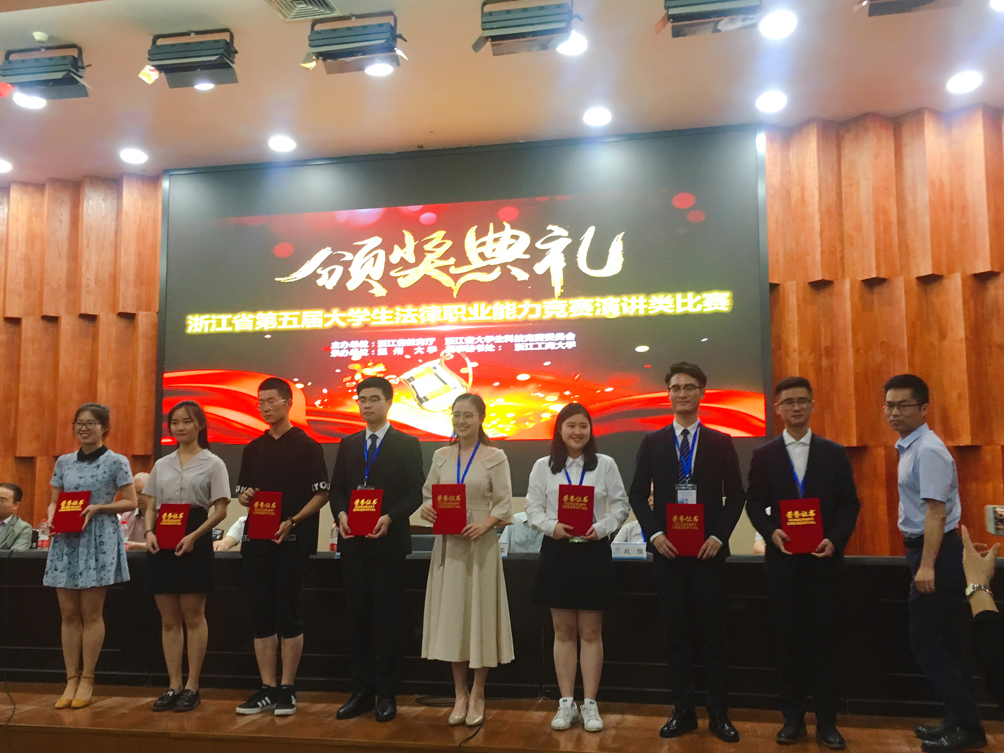 据悉,该项赛事旨在培养具有创新精神和实践能力的卓越法律人才,促进浙江省法科大学生综合素质的全面提升,提高人才培养质量。大赛共分“模拟法庭类”、“法律演讲类”、“法律辩论类”、“法律征文类”四项赛事,每年举行两项。今年演讲竞赛自1月份启动以来,共有全省32所高校的399位参赛选手提交视频作品,最终评选出150位参赛选手进入现场演讲环节。决赛共产生一等奖24项、二等奖50项、三等奖76项。