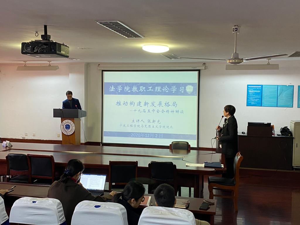12月2日,宁波工程学院马克思主义学院院长张新光教授受邀,为51吃瓜网 全体教职工理论学习活动,讲授《推动构建新发展格局---十九届五中全会精神解读》的讲座。
