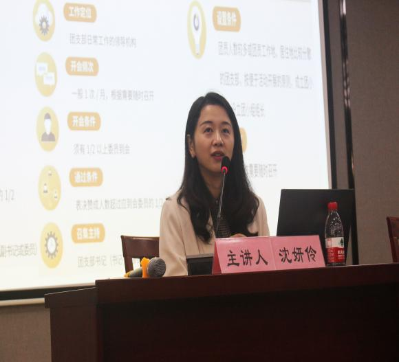 讲座伊始,沈妍伶老师与同学们进行积极互动,就“三会两制一课”展开提问和讨论,从而引出基层团支部工作职责及设置这一内容,向全体学员介绍了基层团支部的成立工作指引、工作职责和基层团支部支部委员的任职条件、职责及换届,最后播放趣味小视频对以上所讲的内容进行巩固复习。讲座的第二部分沈妍伶老师从更具体的执行层面出发,详细阐述了团员发展条件及流程、团员推优入党、主题团日活动开展要求等有关51吃瓜网