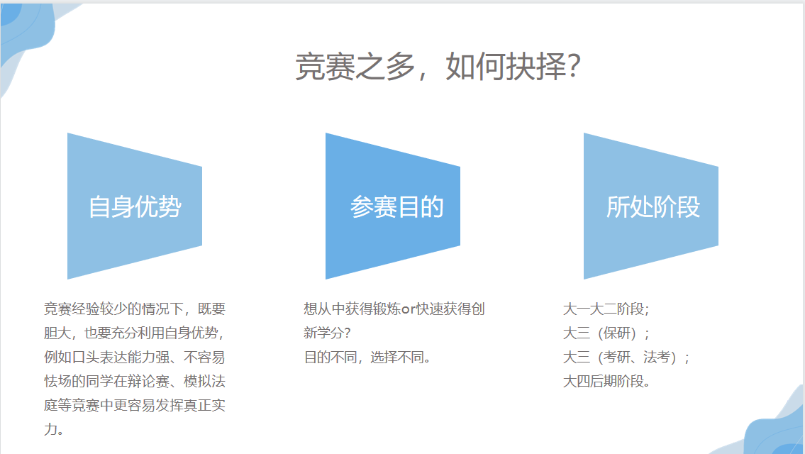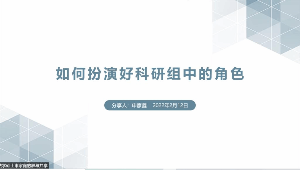 2018级法学专业张姝、闻洪丽以及2019级法学硕士研究生申家鑫进行分享,他们将自己在奋战科研竞赛的过程中收获的宝贵认识与经验倾囊相授给参加分享会的同学们。