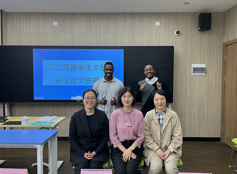 封红梅老师在4号教学楼202教室主持了2018级本科留学生的毕业论文答辩,共有7名同学(5名线下,2名线上)参加答辩。5名线下答辩同学均做了充分准备,并提前赶到答辩教室等候;2名线上答辩的同学克服了时差和网络等方面的困难。答辩组的三位老师提前认真审阅了7篇论文,分别有针对性地提出了修改意见和建议,并就论文相关内容提问,同学们均能认真回答老师们的提问。最后,答辩组经过评议,一致同意7名同学通过论文答辩。国际化、全英文教学团队成员林薇老师为此次答辩做了精心的组织和安排,并一直在现场为教师和同学们做好服务和保障工作。