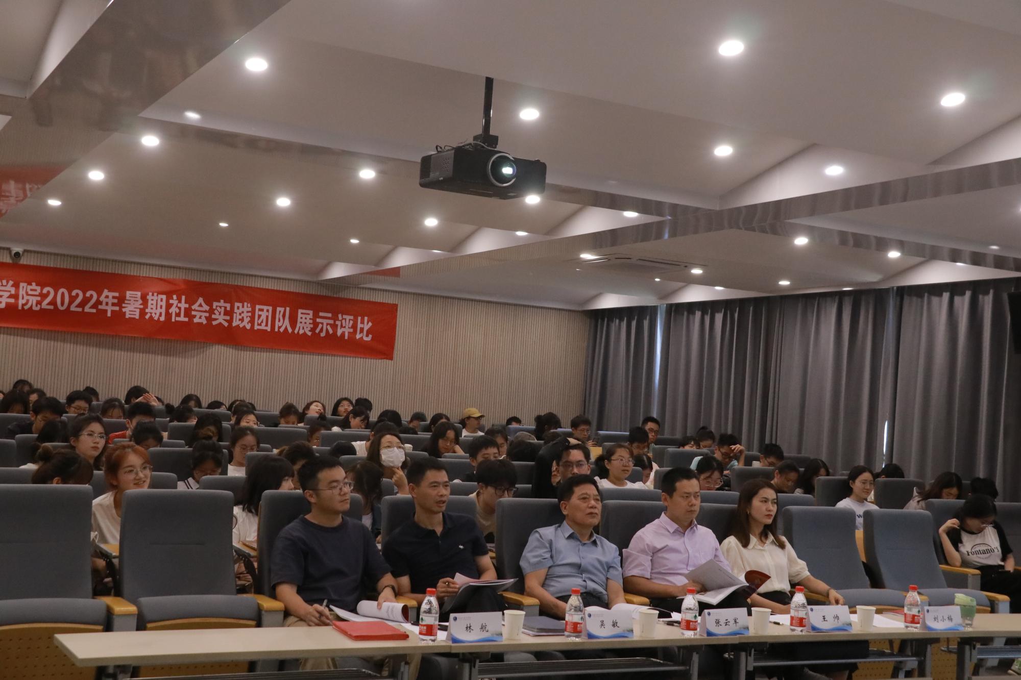 党委副书记吴敏、团委书记刘小梅、辅导员林航以及参与评比的21个实践团队的100名学生。