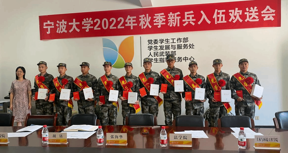 2022年秋季新兵入伍欢送会在黄庆苗楼406会议室举行。校学生处/人民武装部相关负责人、入伍学生所在学院学工负责人、征兵辅导员等参加欢送会。